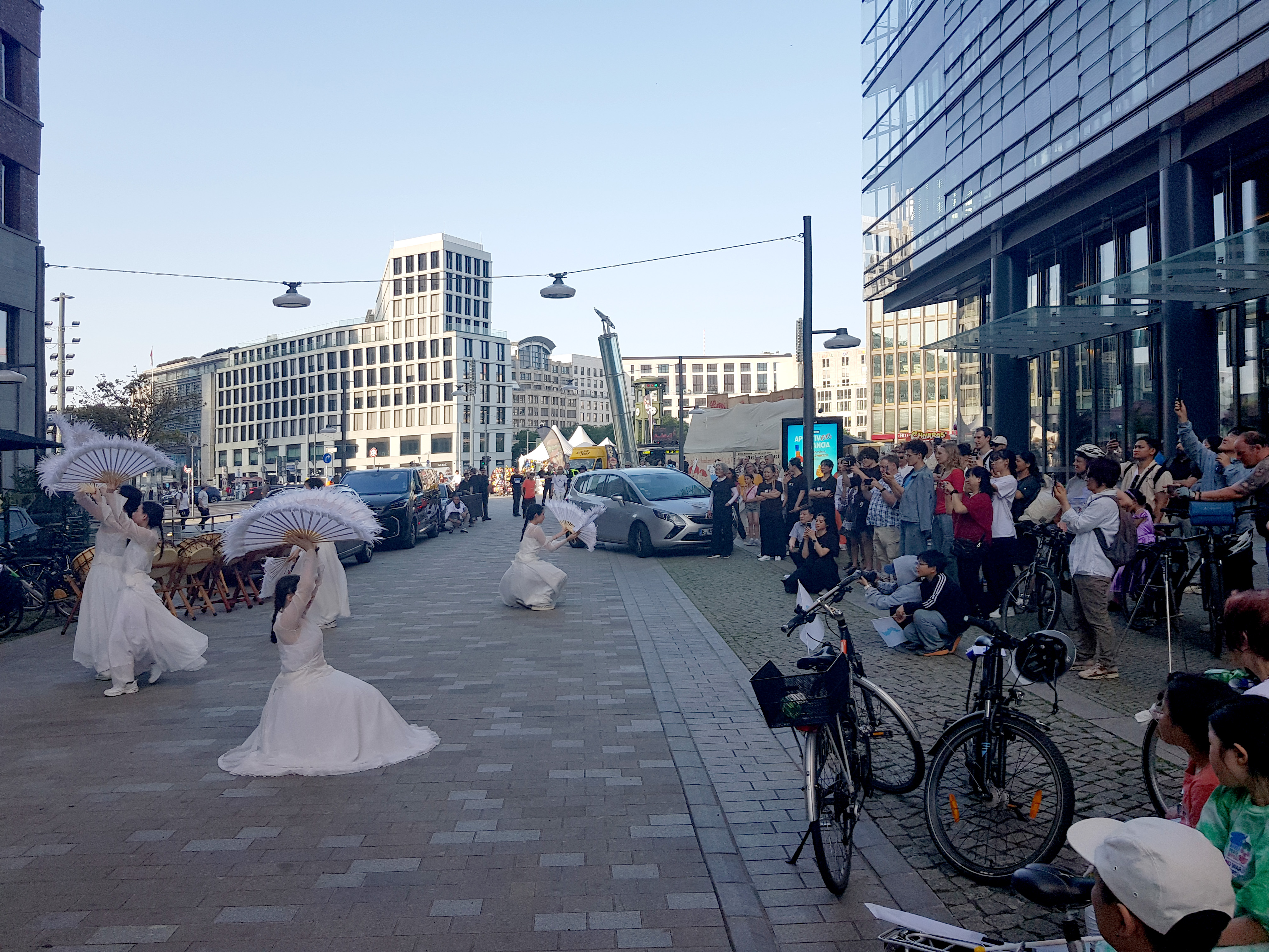 마지막에는 무악 베를린(지도 최윤희)의 한반도평화와 통일을 기원하는 기원무와 힘차게 맞이할 한반도 평화와 통일의 길의 시작 문을 여는 듯한 힘찬 모듬북 공연이 펼쳐지며, 한반도 평화를 기원하는 열기를 더욱 고조시켰다.